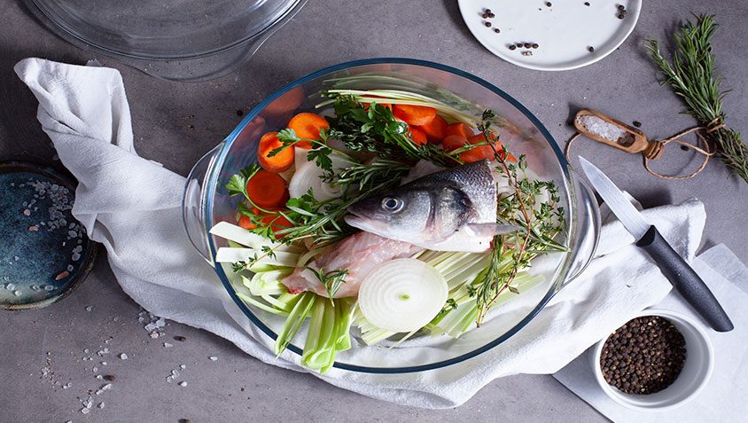 Fish stock is an ingredient used in a variety of seafood recipes. Among the most important, we can find rice based recipes, like paella, soups, sauces and many more. You can prepare fish stock ahead of time and keep it in the fridge, so that you can warm it up just moments before starting to cook your recipe.